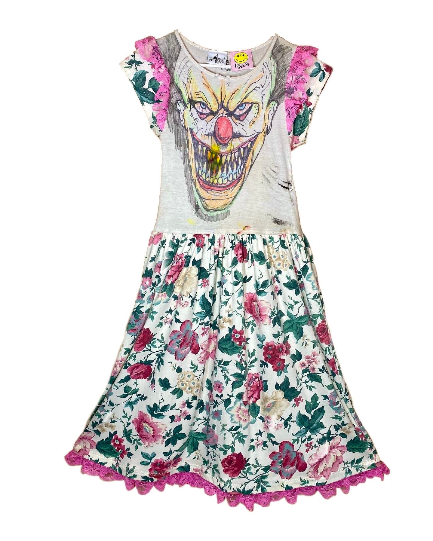 Hollywood Gifts x LiFER collab 1/1 clown dress // clown shirt hand drawn by @hollywoodgifts99 // two side seam pockets // pls note this item was made using upcycled materials and may contain stains, spots, snags, or holes // ONE OF A KIND :)